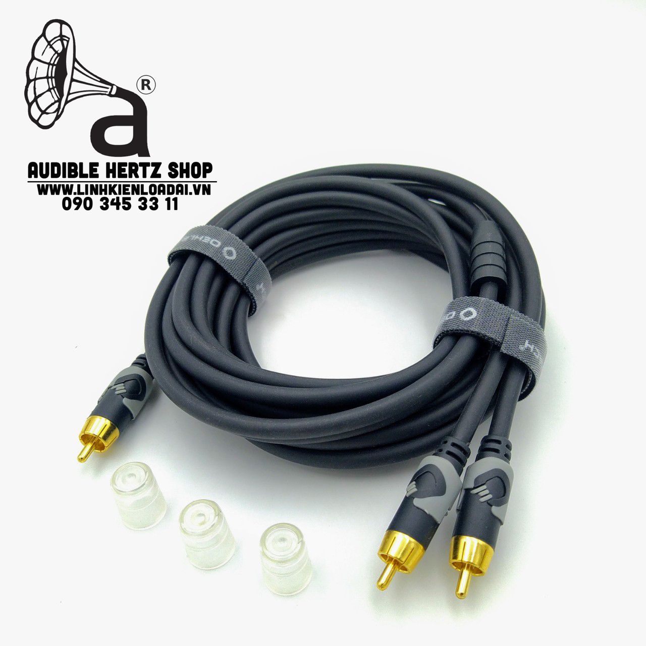 Dây loa subwoofer chữ Y với 3 đầu cắm RCA, dùng cho kết nối giữa loa sub điện và hệ thống âm thanh hifi hoặc homecinema.