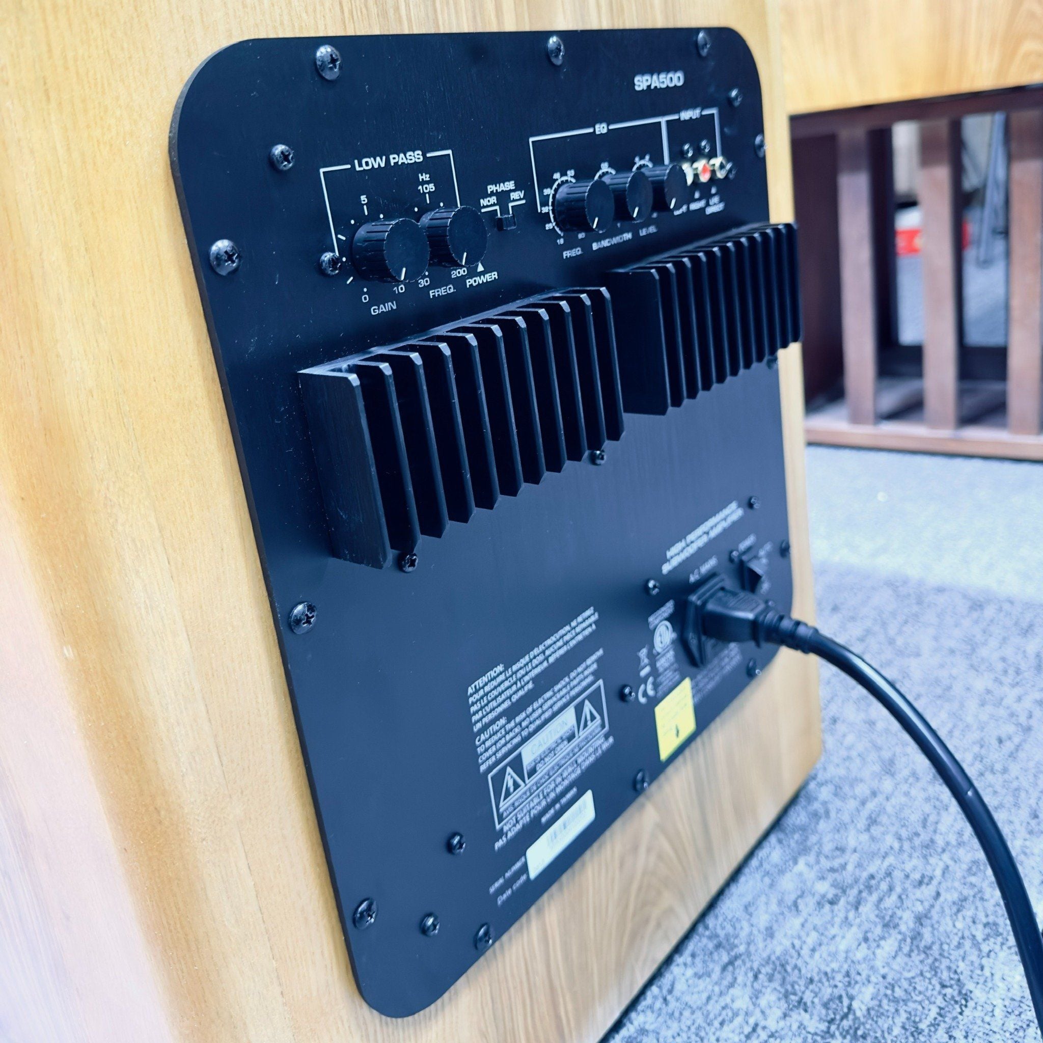 Loa sub sử dụng củ loa sub 30cm hết số của Dayton Audio, RSS315HFA-8 kết hợp với một con plate amp khủng 500W cũng từ Dayton Audio, SPA500.